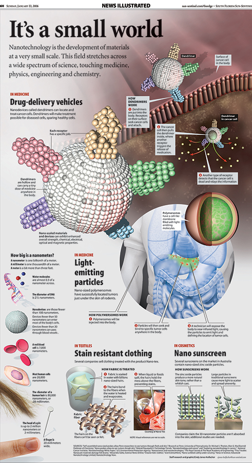 Advances in nanotechnology are rarely covered in the news. My goal was to visualize several areas, giving readers a look into "small" science.