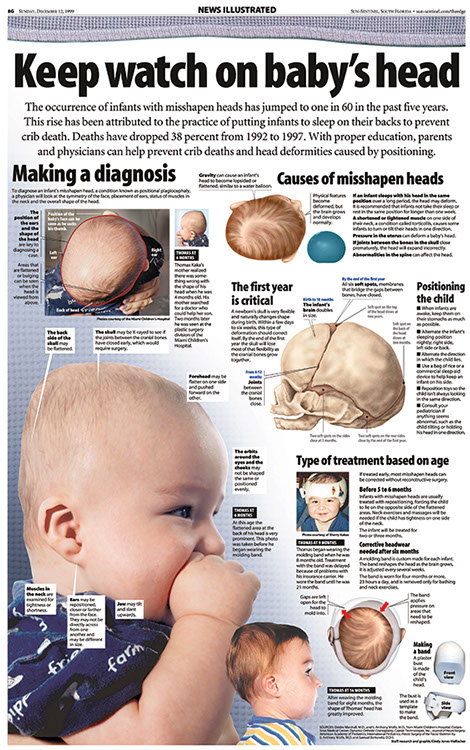 This graphic is one of my favorites. It is hard to imagine that a simple football-like helmet could reshape a young child's skull without surgery. The most important message is that treatment must begin before the child's first birthday, a small window of time.