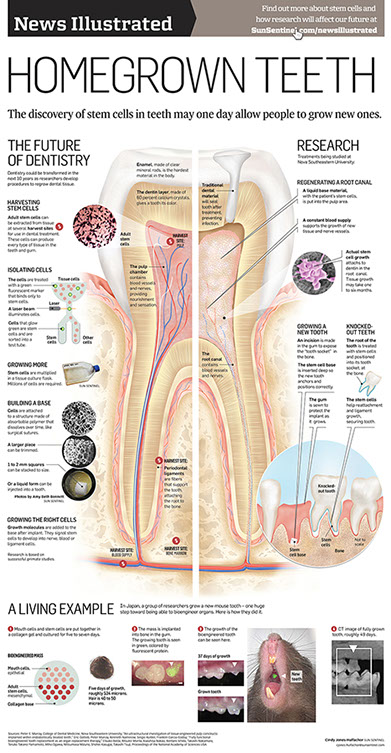 Worked with Dr. Peter Murray to create a visual depiction of his research using dental stem cells to grow new teeth. Expertise in visual display, writing and editing gave readers a step-by-step explanation of the process.